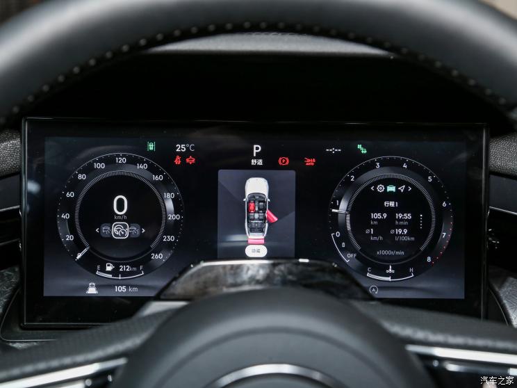 安全配置上,新车从中配车型开始配备L2级驾驶辅助功能,包括车道保持辅助、自动紧急制动以及自适应巡航等;高配车型增加盲点监测、倒车防碰撞、高速自动变道以及自动泊车等功能;顶配车型则增加了低速拥堵领航功能,可实现L3级自动驾驶辅助。