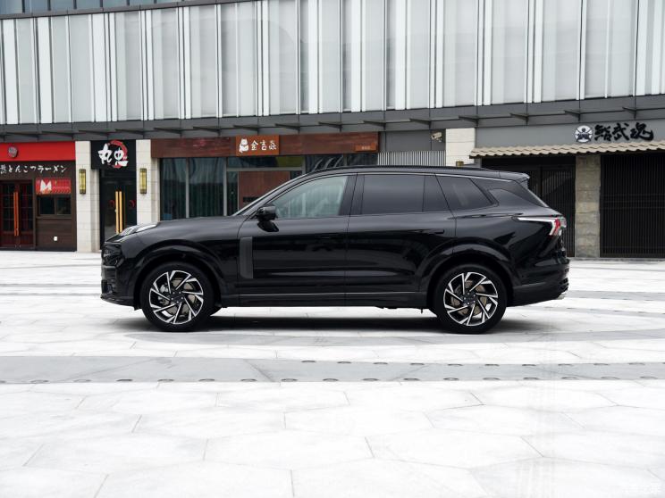 车身侧面来看,作为一款中大型SUV,领克09的体型还是非常庞大的,前后轮眉采用多层线条刻画,配合车门下方内凹式的造型设计,以及密条辐大尺寸轮圈,使得新车看上去非常敦实。熏黑D柱的设计也让车尾有一种悬浮效果。