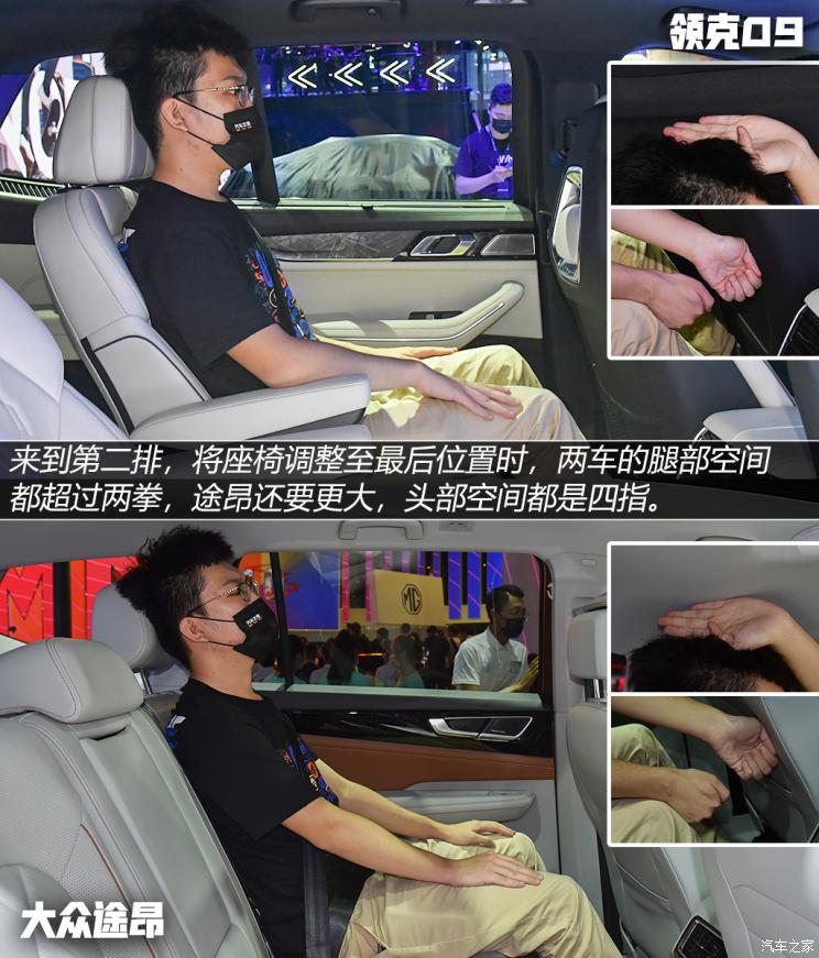 身高为178cm的体验者将前排座椅调整至最低且合适的驾驶位置后,途昂的头部空间剩余一拳四指;保持前排不动,第二排腿部空间超过两拳,头部空间为四指;第三排主要为应急使用,途昂的表现也算是中规中矩。
