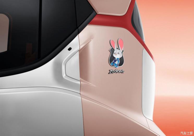新车整体轮廓与宝骏E200相似,但造型更加灵动,前脸采用全封闭设计,搭配前保险杠的黑色饰板,显得十分时尚。新车的尾部造型简洁,分体式的尾灯设计辨识度颇高,刹车灯和示宽灯布置在后挡风玻璃周围,后雾灯和倒车灯则布置在后保险杠两侧,且加入了不规则四边形的设计,十分新潮。值得一提的是,新车前翼子板处将会配备“Disney”限定徽标;此外,车尾部分还将配备Judy&Nick俏皮形象徽章,能够进一步彰显车辆的特殊身份。