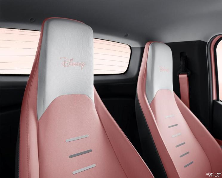 内饰方面,新车采用了相当简洁的中控台设计,中控台、门板、座椅等处将会采用与车身同色的设计风格,能够形成良好的呼应。此外,新车还将在座椅头枕处采用“Disney”刺绣设计,能够让我们进一步感受到车辆的特别之处。配置方面,新车将标配无钥匙进入/一键启动、冷暖空调、后倒车雷达、座椅4向调节、EPS电动助力转向系统以及遥控钥匙/中控锁、车载蓝牙、车载收音机、行车记录仪专用电源接口、梦想出行妙妙屋+车贴等。