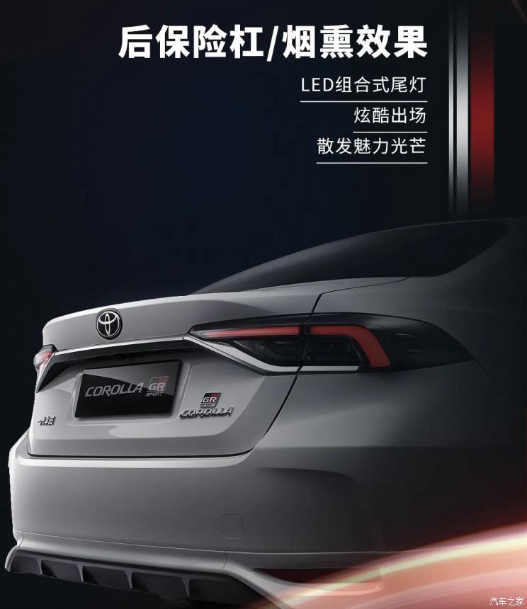 尾部方面,新车换装了熏黑效果的LED尾灯组,搭配下方大尺寸扩散器,让新车看上去十分动感。同时,新车还换装了16英寸哑光黑色密辐式轮圈。值得一提的是,新车右侧加入GR SPORT专属LOGO,大大提升该车的辨识度。