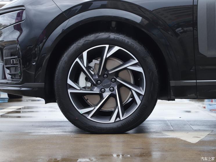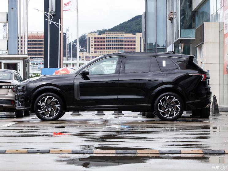 车身侧面来看,作为一款中大型SUV,领克09的体型还是非常庞大的,前后轮眉采用多层线条刻画,配合车门下方内凹式的造型设计,以及密条辐大尺寸轮圈,使得新车看上去非常敦实。熏黑D柱的设计也让车尾有一种悬浮效果。