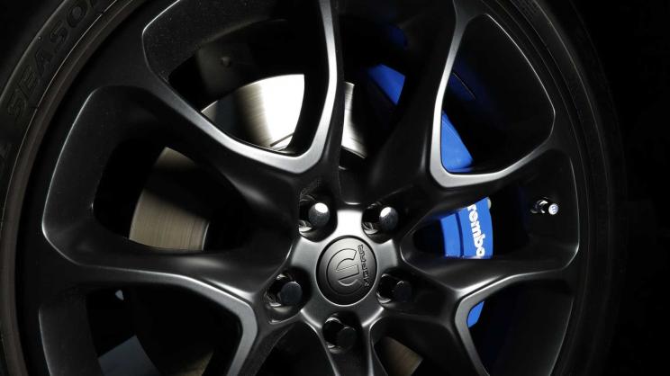 车侧部分,新车将会配备一款20英寸轮圈,蓝色的Brembo卡钳也将不会缺席,能够起到非常不错的点缀作用。而在车尾部分,新车将会配备与前脸部分相呼应的蓝色车身拉花;同时,粗壮的排气机构也能够让车辆具备更强的攻击性。