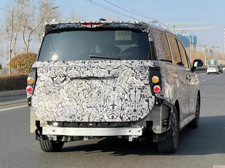 车身侧面来看,该车侧面呈现出前高后低的走势,车顶与尾窗的衔接过渡较为流畅,看上去十分协调。此外,硕大的车身采用了双侧滑门,方便车内乘客上下车。尾部方面,由于该车仍处于早期试装阶段,其尾灯组等部件还是临时部件,不具备太强的参考性。动力方面,目前官方并未公布其更多信息,我们也将持续关注。