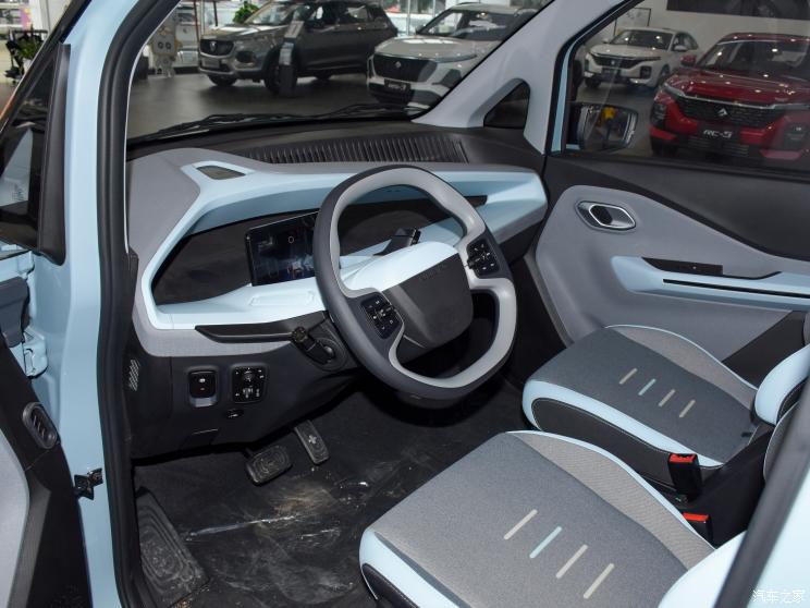 车内的设计极其简洁,它采用了多功能方向盘,并配备了小尺寸的液晶仪表。中控部分的按键与面板相融合,显得干净简洁。新车拥有白、蓝、黄、灰四色内饰,与车身颜色相呼应。配置方面,该车提供7英寸彩色液晶仪表、触摸式空调面板、可实现App车机互联、低速行人警示系统、后倒车雷达、胎压监测系统、ESC车身稳定系统、EPB电子手刹、倒车影像、标配坡道辅助等。