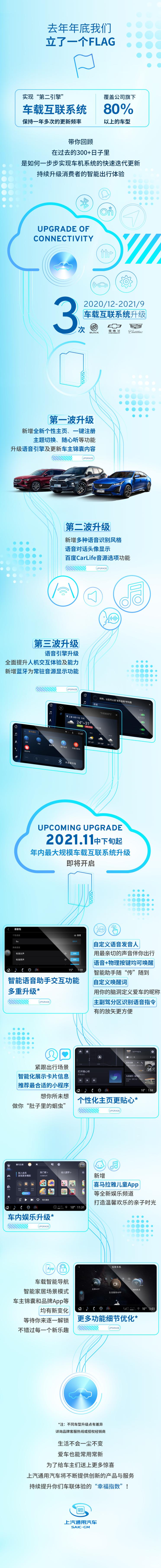 近年来,上汽通用汽车一直致力于推进“第二引擎”车联网战略,将智能网联前沿科技和创新服务快速转化为用户触手可及的安全、智能、互联的用车体验。自去年12月以来,上汽通用汽车已对旗下车型进行了三波车载互联系统的功能升级,涉及别克、雪佛兰、凯迪拉克三大品牌近20个车系,陆续推出的全新应用和不断提升的车机功能,让车辆常用常新。