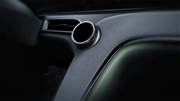 内饰方面,新车采用了当下十分流行的双联屏设计,大尺寸贯穿屏搭配双辐式多功能方向盘,让新车看上去十分具有科技感。同时,比较有新鲜感的是中控区域以及中央通道造型设计,简洁的同时很有设计感。值得一提的是,新车首创的i-Surf 科技皮肤能够更好地与用户进行“交流”,用户可以自定义信息,制造惊喜,甚至打造“女王专属副驾”。侧面来车时,它还会向你投来“目光”,提醒潜在的碰撞风险。同时,i-Surf 科技皮肤采用了威马自主研发的三防科技面料,具备防水、防油、防污功能。i-Rota超级表盘采用“智能手表”表盘式设计,内含丰富微表情,既是情感交互的载体,显示图片、表情、符号等趣味内容,也是车辆控制的中枢旋钮,实现对不同功能的控制,如歌曲切换、温度调节等。