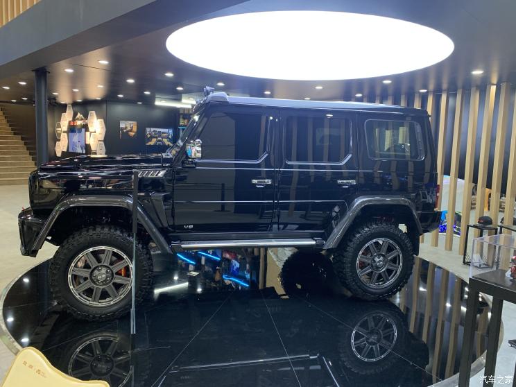 在外观方面,其一共进行了11项改装升级,分别是采用了航空碳纤维材质的前后轮眉和车顶导流板、配合整车升高及加宽,采用全新前后保险杠造型、车顶增加补光灯突出越野元素、全新造型锻造铝合金轮圈、20寸专业越野轮胎、专业越野门桥,车辆离地间隙提高15厘米,轮边扭矩放大50%、12段双向可调氮气减震器、专业越野转向减震器。