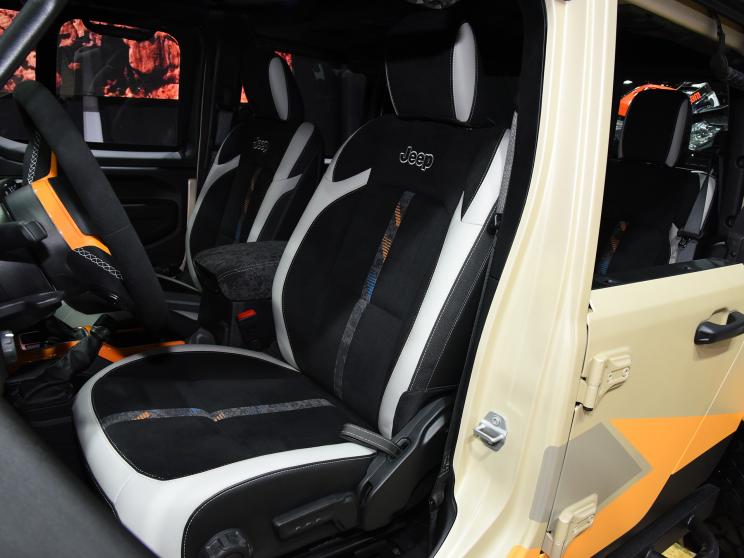 内饰方面,整体设计与角斗士相同,但是在材质上做了升级,比如方向盘升级为翻毛皮材质,车内加入了亮黄色的装饰等。
