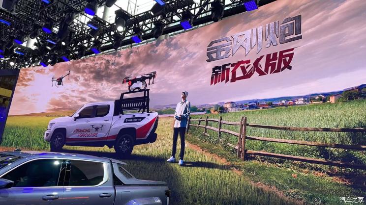 [本站 新车首发] 2021广州车展期间,长城金刚炮新农人版正式亮相。新车主要针对一些户外用车场景进行相应的调整,比如可实现无人机喷洒农药等,预计会在2021年年内上市。