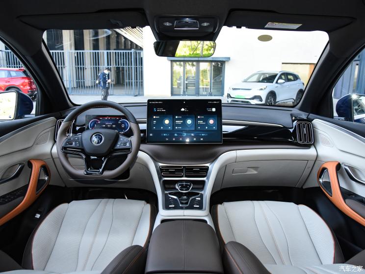 相比外观,这款新车的内饰变化更大一些,整体采用了比亚迪最新的设计语言,中控屏幕尺寸进一步增大,中控台也经过重新设计,并且还推出了宋Pro DM-i专属的内饰配色:麒麟棕+苍穹灰,整体看上去更加豪华且有质感。