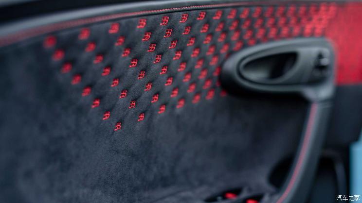 车尾部分,新车配备了巨大的后扰流板为其提供下压力已改善操控性。另外车尾后包围采用了红黑双色的涂装,并于贯穿式的LED尾灯组形成很好的呼应,配合大尺寸的双层车尾扩散器和中置双出的排气布局,让布加迪的高贵质感一展无余。