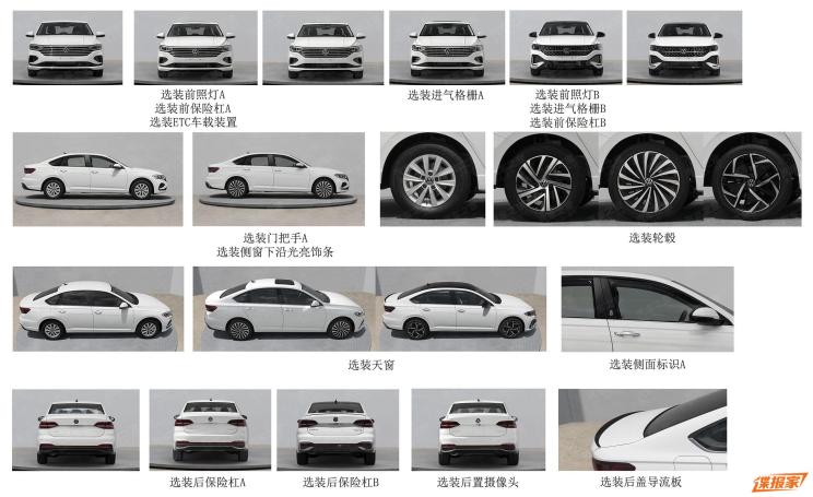 配置方面,新车未来将根据配置不同提供多种样式前格栅造型、多种样式轮圈造型、多种样式前/后保险杠、侧窗下镀铬亮饰条、后置摄像头、天窗等。动力方面,新车将搭载由上海大众动力总成有限公司所生产型号为DLC的1.2T涡轮增压四缸发动机,其最大功率为116马力(85千瓦)。作为参考,现款1.2T车型匹配的是7速干式双离合变速箱。