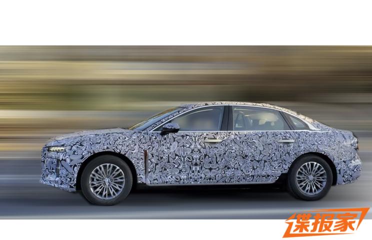 从实车的谍照来看,两侧雾灯处并非是镂空的设计,而是放置了前大灯组,新车采用了分体式大灯的设计。车辆尾部的谍照显示,新车采用了贯穿式的尾灯设计,尾灯的造型也和红旗H9极为相似,尾部采用双边镀铬排气。