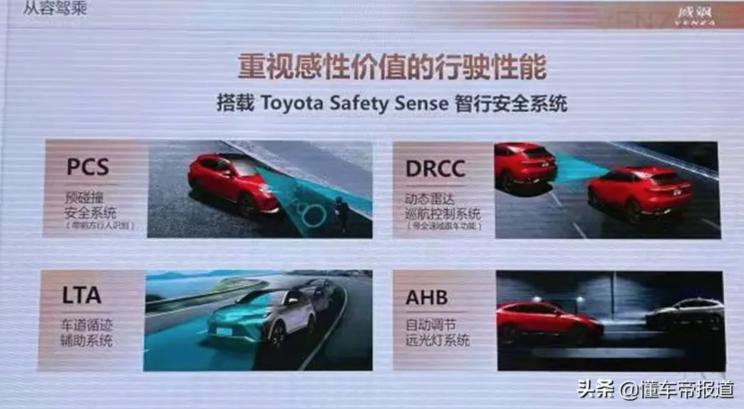 在主动安全配置上,新车有望全系配备丰田Toyota Safety Sense智行安全系统,包括PCS预碰撞安全系统、DRCC动态雷达巡航控制系统、LTA车道循迹辅助系统以及AHB自动调节远光灯功能。