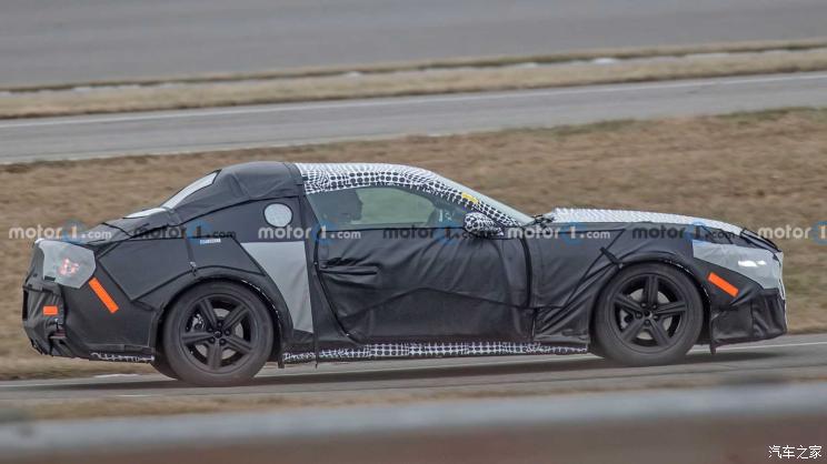 首先来看外观,全新Mustang已经完成骡车测试阶段,因此车身设计已经十分接近量产。虽然有着大量伪装,但基本可以看出新车整体轮廓还是延续现款Mustang的造型。前脸肯定会有所变化,但应该不是翻天覆地的,预计将会往更有棱角的方向变化。