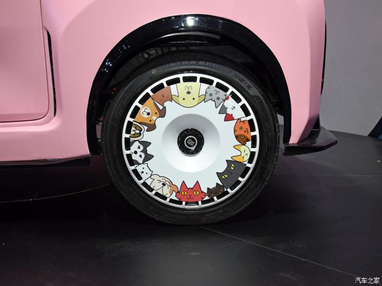 新车采用双门三座的设计,车身紧凑,短小的轴距更方便城市驾驶,转弯掉头都更加方便。车尾更像是日本K-CAR的设计,有着厚重的保险杠和突出的扰流板。尾灯与后保险杠采用类似车头的设计,U型车灯很显眼。轮圈的造型也较为别致,前后轮是不一样的设计,前轮条纹设计,后轮是卡通形象设计。