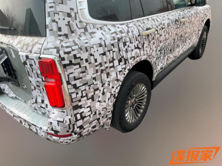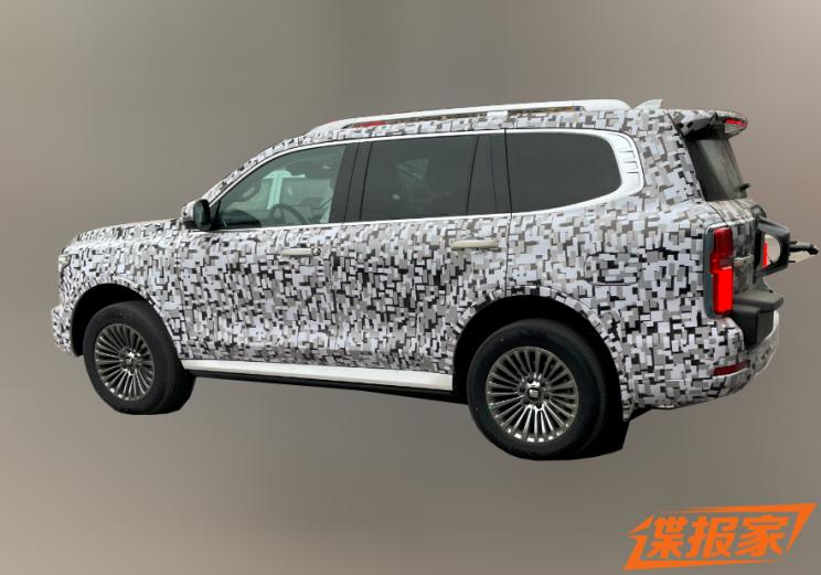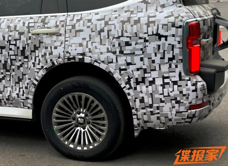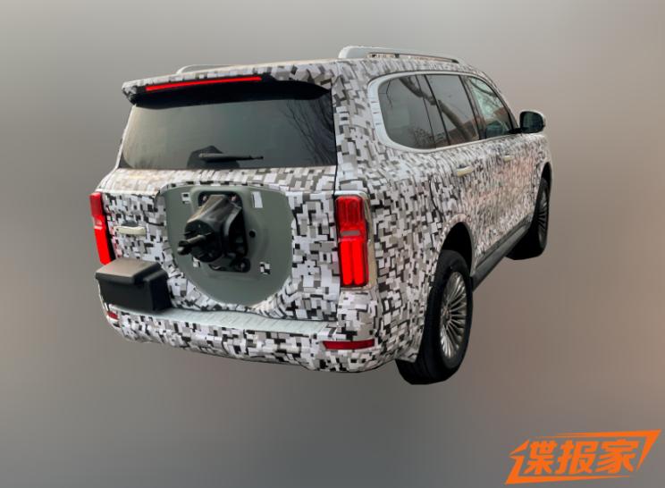 路试车整车都覆盖上了厚重的伪装,不过从整体轮廓来看依旧能分辨出其坦克500的造型。插电混动车型的外观与燃油版坦克500几乎没有任何差异,仅有的变化在于车身右后侧多了一个圆形的盖板,我们猜测这就是这款新车的充电口位置。