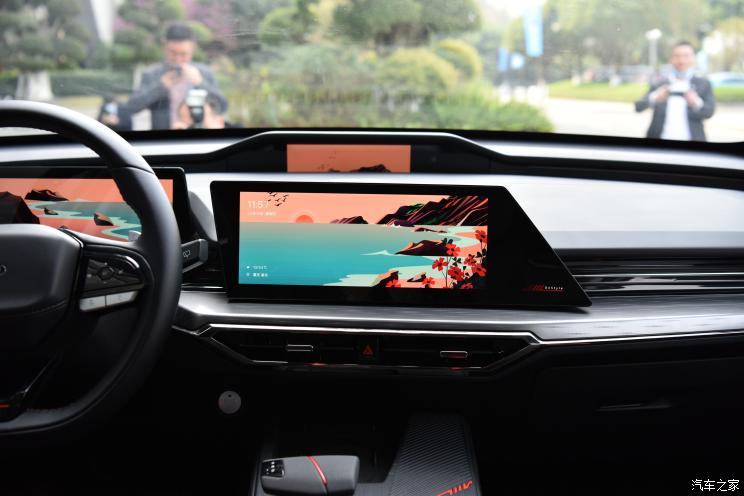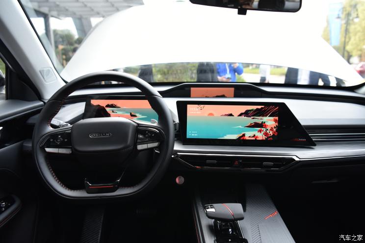 新的座舱设计以宇宙为灵感,看上去非常科幻。车内拥有10.25英寸仪表支持裸眼3D、12.3英寸中控屏内置最新的OnStyle 5.0系统,支持千里眼、顺风耳、保镖模式、无麦K歌以及赛道模式外,还可以与AR-HUD显示屏、9.1英寸智能小欧屏、手机和穿戴屏实现“六屏互联”。