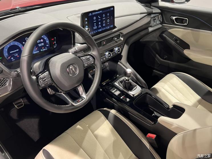 内饰方面,量产版车型的内饰主打运动与豪华风,虽然在布局上与思域非常相似,但用了使用了更多软质材料,同时辅以双色拼接看起来豪华感更强。配置方面,新车将提供10.2英寸仪表盘、座椅记忆/加热功能、12扬声器等。