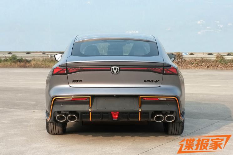 外观方面,长安UNI-V延续了无边界格栅的家族化设计语言,前脸大量使用直线条与折线组合的几何设计元素,横向排布的大灯显得较为狭长,下方格栅两侧为深色的三角形雾灯区域。同时新车还提供运动版外观套件,加入与车漆异色的饰条作为点缀。