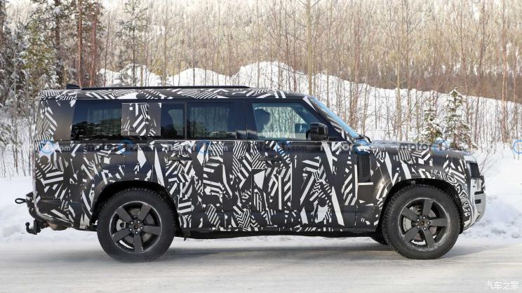 从最新的谍照来看,新车做了轻度伪装,可以清晰的看到新车的前脸造型轮廓,与现款路虎卫士完全相同。车身侧面,是这款车最大不同的地方,新车相比110车型,C柱以后的车窗明显加大,后悬明显加长。同时,车辆尾部没有放置外挂式备胎,不过后车门依然是侧开式,尾部的设计与现款车型仍然完全相同。