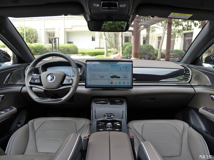 内饰方面,2022款汉DM系列与在售车型基本保持一致,依旧为环形座舱布局,车内融入了大量的龙元素,比如BYD Heart龙擎之心,以及无级变色龙鳞副驾面板。