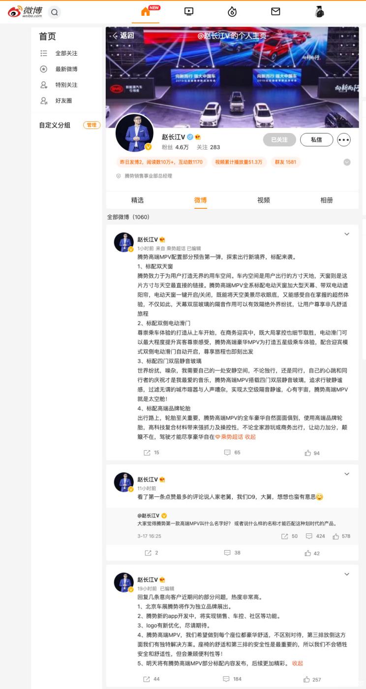 值得一提的是,在3月20日腾势销售事业部总经理赵长江在社交媒体上还透露了腾势品牌的最新动向,包含1、北京车展腾势将作为独立品牌展出;2、腾势新的App开发中,将实现销售、车控、社区等功能;3、LOGO有新优化等。关于新车更多信息,我们也将持续关注。