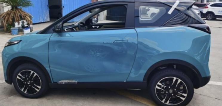 从图中来看,该车整体展现了微型纯电动车四四方方的设计,车头部分动感时尚,头灯设计简洁大气,而雾灯区域内凹的设计,则丰富了前脸的线条。