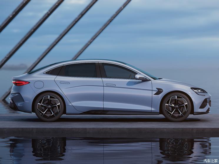 车身侧面来看,其线条设计整体较为简洁,腰线从前翼子板一直延伸到尾部,在C柱部位的上扬式设计增添了一份肌肉感。同时,短前后悬的设计使车辆更加运动美观。值得一提的是,海豹D柱前的三角窗装饰加入水滴元素,更加契合海洋美学的设计理念。