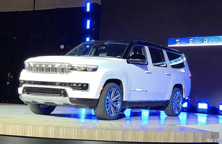 在去年的洛杉矶车展上,我们迎来了全新一代Wagoneer,该车已经来到第四代车型,定位于大型豪华SUV。此次纽约车展上首发的Wagoneer长轴距版车型前脸与全新Wagoneer保持一致,家族式七孔格栅设计十分有辨识度。