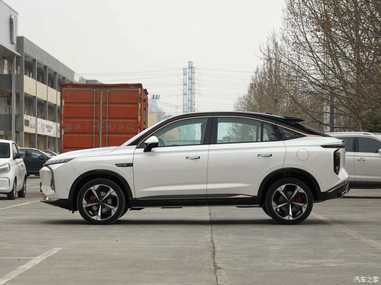 回顾外观,新车采用“仿生设计”理念,看起来富有时尚感。前脸采用类似封闭式直瀑中网造型,搭配犀利的分体式大灯组(官方称为“能量立方”灯组),以及梯形进气口,提升了前脸的气势。车身侧面线条比较流畅,并采用了溜背式设计,营造出较强的运动感。同时新车还采用了悬浮式车顶造型,配合微微上扬的车身腰线,提升了车辆的设计美感。