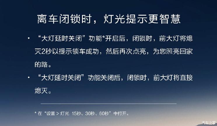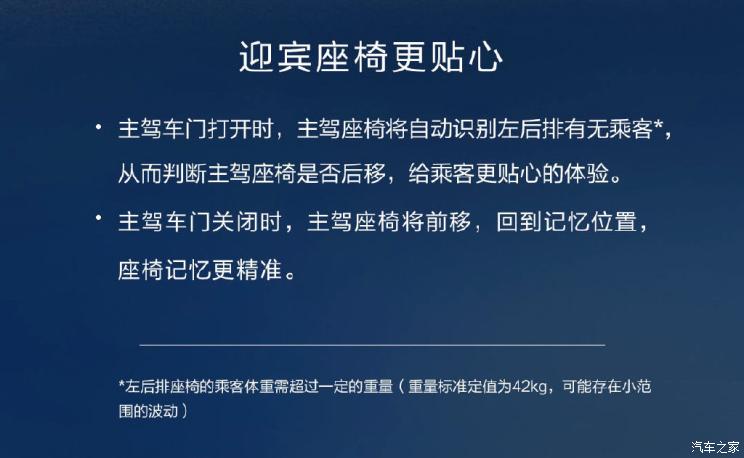 首先是主驾座椅迎宾更贴心,当主驾车门打开时,主驾座椅将自动识别左后排有无乘客,从而判断主驾座椅是否后移;主驾车门关闭时,主驾座椅将前移,回到记忆位置,座椅记忆更精准。全程无需主动调节。第二点升级是离车闭锁时,灯光提示更智慧。“大灯延时关闭”功能开启后,闭锁时前大灯将熄灭2秒以示锁车成功提醒,然后再次点亮;如果“大灯延时关闭”功能关闭后,闭锁时,前大灯将直接熄灭,在夜晚回家时更加实用。第三就是智慧语音功能更加丰富,新增语音播控有声新闻,试试对小艺说“我想听新闻”,可以收听新闻。新增语音指令导航,对小艺说“我要洗车”、“我要充电”、“我要加油”、“我要停车”,小艺将推荐附近服务地点,贴心出行助手服务更周到。