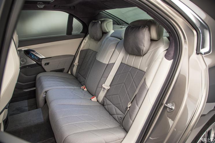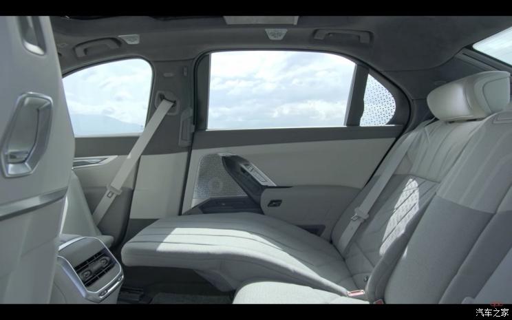 新车座椅采用羊毛与皮质拼接,车顶采用麂皮材质,触感上乘。来到后排,新车将会配备31英寸的8K全景显示屏,无疑将会大大提升后排乘客的满意度,另外,后排娱乐控制面板则被集成在门把手处,相比现款的Pad设计,后排两名乘客同时操作将会更加方便。新车后排座椅腿托支持大角度调节,后排乘客的尊贵体验将进一步提升。