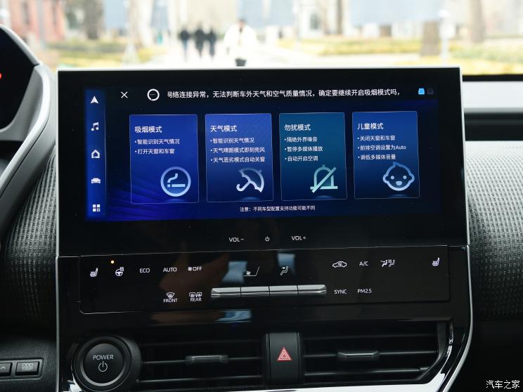 座椅上,bZ4X的座椅宽大舒适,并有较好的包裹性,座椅很有运动感。后排座椅相对一般,但腿部空间充裕,后排地板相对平整。整个后车窗尺寸较大,视野较好。车顶天窗采用分段式布局,后排有独立的空调出风口,但没有提供空调控制区域。后排座椅也有座椅加热,并提供了手机充电接口。后背厢的储物空间表现良好,后排座椅靠背可4/6放倒,并形成平坦的储物空间。
