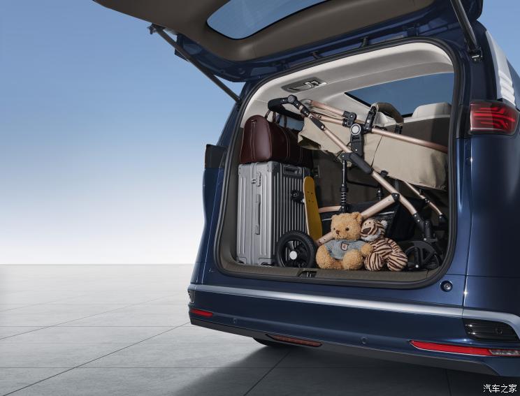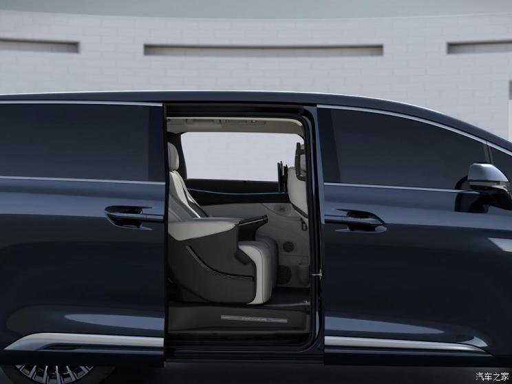 车身侧面,整个车身修长,一根立体的腰线雕刻出车身侧面的动感,侧面的车窗尺寸适中,车内乘客将有不错的视野,前后连体式门把手整体感更强,双侧电动开启滑门,体现出高端MPV的尊贵,新车配备了19英寸多条辐轮圈,在阳光下展现出华丽的一面。新车长宽高分别为5250mm/1960mm/1920mm,轴距3110mm。