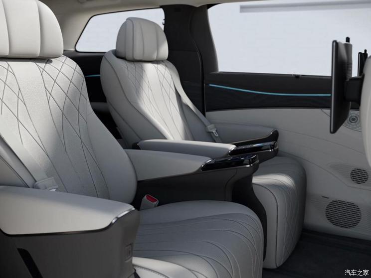 新车在第二、三排头顶上方两侧分别设置了空调出风口,同时,D9标配双天窗,带双电动遮阳帘和一键开关;双侧电动滑门;四门双层静音玻璃,进一步提升乘坐舒适度。车辆第三排两侧也设有扶手,并且三个座椅都有头枕,保证了一定的舒适性。另外全系还标配了丹拿品牌音响。
