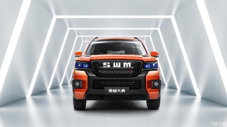外观方面,SWM斯威大虎车采用了硬派的设计风格,多边形前格栅十分粗犷,搭配中央巨大的“SWM”品牌LOGO,让新车看上去极具辨识度。同时,前包围的设计也是大开大合,看起来颇有冲击感。据官方表示,新车未来将提供酷黑、雪白、玄灰、墨绿、金橙、蔚蓝六色可选。
