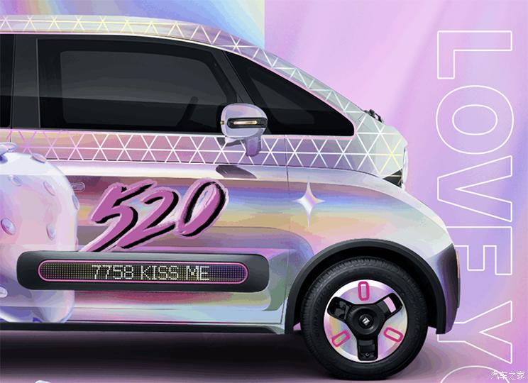 [本站 新能源] 日前,宝骏官方释放了关于宝骏KiWi EV来电版车型的更多信息,新车全车将采用粉紫色镭射装饰,并在车侧和副驾驶前方布置LED灯牌,此外车辆内部车顶还采用心形装饰,烘托浪漫、梦幻的气氛。据悉,新车将在5月20日正式发布。