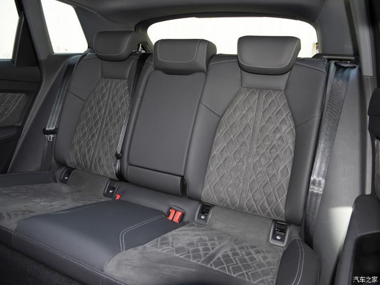车尾部分,整体的轮廓有着比较明显的奥迪SUV风格,让人感到熟悉,尾标命名规则也沿用了燃油车的方式。尾灯为较为流行的贯穿式LED尾灯设计,灯组还具备离/回家动画功能及动态转向灯功能,整体辨识度不错。