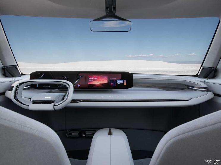 内饰设计十分简洁,除了一块27英寸的超宽显示屏以及一个个性的方向盘之外,前方几乎没有别的机构。概念车中车内的座椅拥有多种模式,比如在自动驾驶模式下第一排会向后旋转180度,第二排座椅折叠成为一张桌子,这样的话第一排和第三排的乘客就可以直接面对面交流,不过这样的模式在量产车上大概率不会出现。