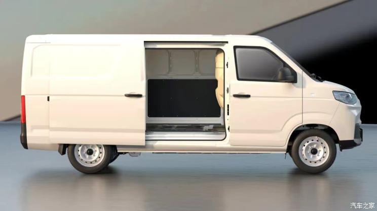 江豚EV是一款为城配物流定制开发的纯电动车型,其拥有高空间利用、高承载力等优势。外观方面,新车虽然采用封闭式格栅设计,不过还是保留了面包车的特点。侧面采用单侧侧滑门的设计,侧滑门宽度达1.007m,新车内部载货容积达到6.6立方米,满足大件物品搬运需求。