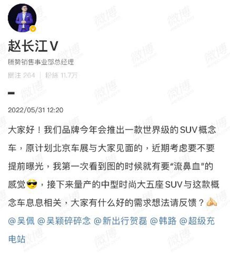 [本站 国内谍照]日前,我们从互联网处获取到了一组疑似腾势全新车型的路试谍照。新车或为此前腾势销售事业部总经理赵长江表示的:“世界级的SUV概念车”,或是即将量产的中型大五座SUV。