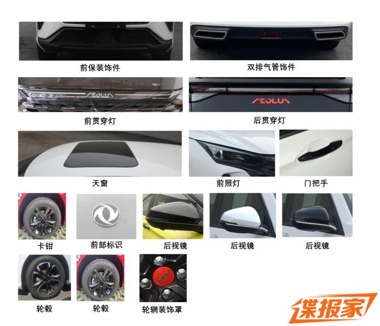 配置方面,新车根据配置不同,可选装前保装饰件、双排气管饰件、前贯穿灯、后贯穿灯、天窗、前照灯、门把手、前部标识、后视镜、轮圈等。轮圈方面,新车将提供16英寸轮圈。动力方面,新车将提供1.5T发动机,最大功率为125马力。