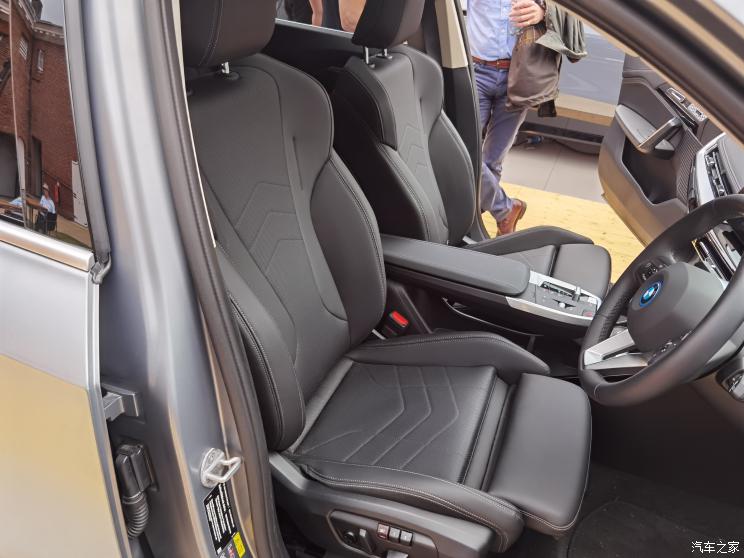 内饰方面,新车配备了10.25英寸的全液晶仪表盘与10.7英寸的中控多媒体显示屏相连接的双联屏设计,并内置了宝马最新的iDrive 8车机系统,在中控台下方有一个空间巨大的手机无线充电面板和两个杯架,而功能控制区域与中央扶手形成了一个断崖式的设计,并配备了拨杆式的电子换挡机构。另外新车的空调出风口设计也较为独特,中央是一个一体式造型,副驾驶则是一个双排的贯穿式设计。