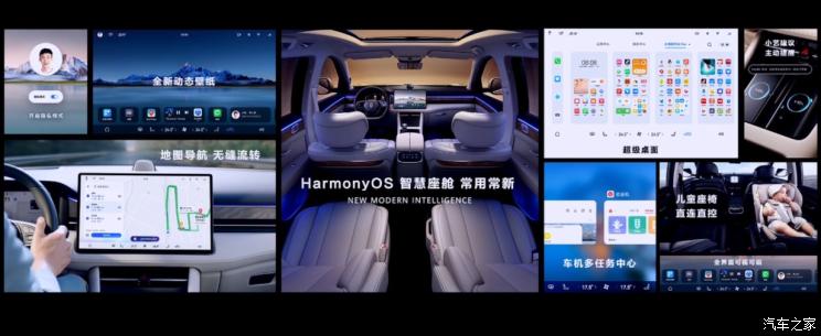 座舱内的焦点是这块15.6英寸2K HDR中控大屏,它搭载了升级后的HarmonyOS智能座舱,新增的超级桌面功能支持手机车机硬件相互调用功能,既可以让手机应用直达车机,也可以让应用直接调用车内外摄像头进行拍摄等。车内还配备车载家庭KTV、高品质音视频、沉浸式游戏模式以及19单元HUAWEI SOUND音响系统。10.25英寸的曲面全液晶仪表盘显示效果比较细腻,信息也相当丰富。