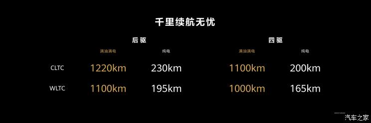 动力方面,问界M7搭载1.5T四缸增程器+双电机组成的增程式混动系统,其中增程发动机最大功率为92kW,前后驱动电机最大功率分别为130kW/200kW,综合最大功率达到了330kW,官方0-100km/h加速成绩4.8s。还搭载了容量为40.06kWh的电池组,城市通勤时,CLTC工况的纯电续航可达230km(后驱)/200km(四驱),远途自驾时,CLTC工况续航最高可达1220km,油耗低至5.8L/100km。