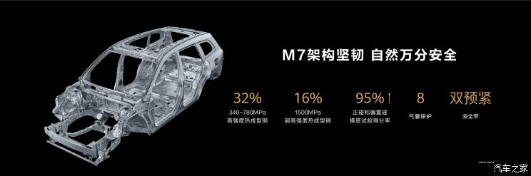 安全性方面,新车按照C-NCAP(21年标准)5星标准以及中保研“Good”评级安全标准进行开发设计,构筑更坚固的车身安全防线。电池方面,AITO问界M7电池组采用阵列式防火墙结构,并搭载VHR电池健康管理系统,保证极端情况下的电池稳定安全。