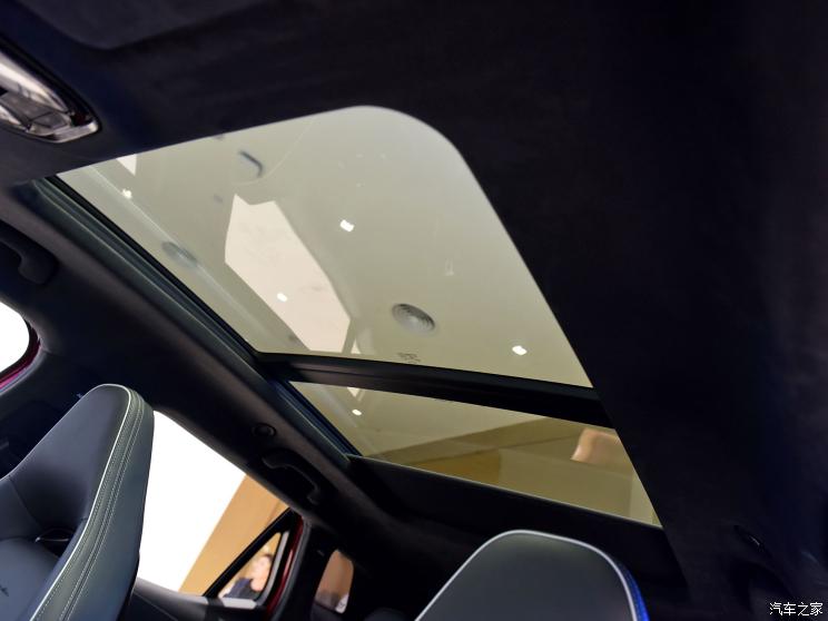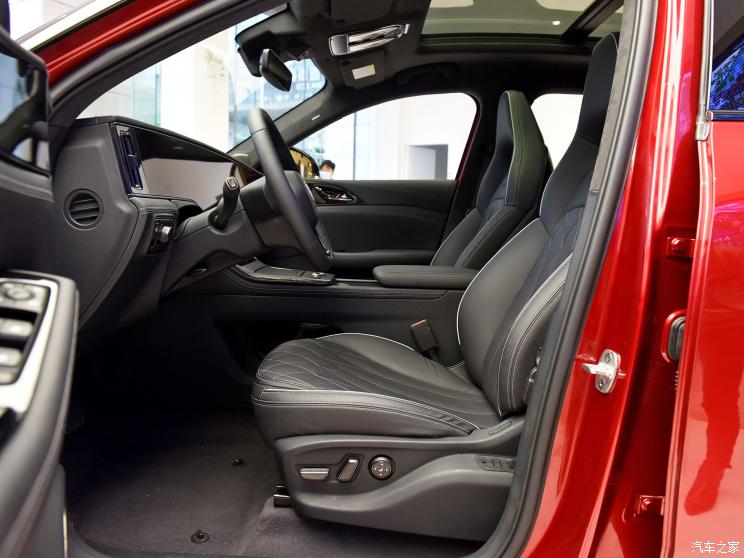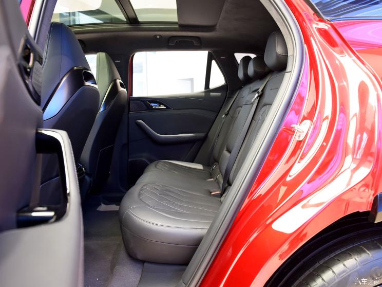 车辆座椅采用了头枕一体式的赛车风格座椅,并使用了菱形编织的缝线处理,整个座椅看上去十分的厚实,拥有加热、通风和记忆功能的电动调节座椅,后排同样有相似的缝线处理。车辆后排拥有两个空调出风口,和充电接口,车顶拥有一个全景天窗,尾门具备电动感应功能。